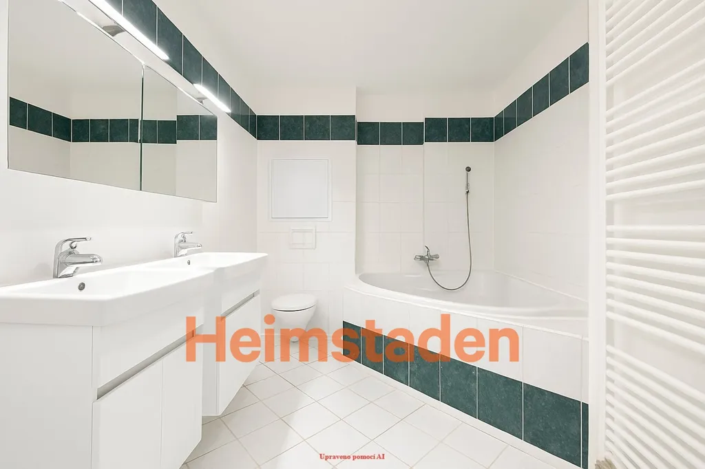 Koupelna je řešena velkoryse a nabízí jak sprchový kout, tak vanu, což v nájemních bytech nebývá samozřejmostí. Koupelna je spojena s toaletou a poskytuje dostatek prostoru pro pohodlné každodenní fungování.