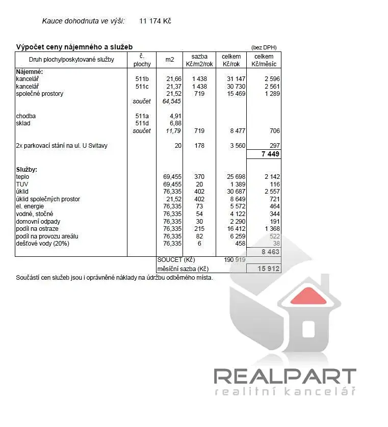 (+ záloha na služby 8.463 Kč , uvedené ceny jsou bez DPH)