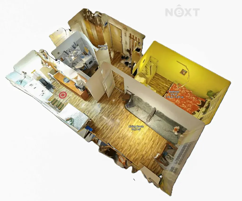 - Celková plocha: 53,32 m² (49,84 m² byt + sklep 3,48 m²)