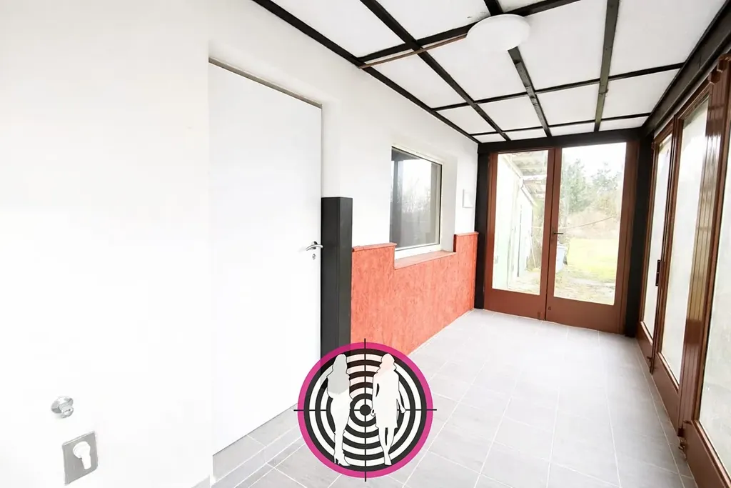 Dispozice: vstup, prosklená veranda, technická místnost, samostatná kuchyň, obávací pokoj, ložnice, koupelna se sprchovým koutem a wc, v podkroví se nachazejí dva menší pokojíky, šatna a toaleta.