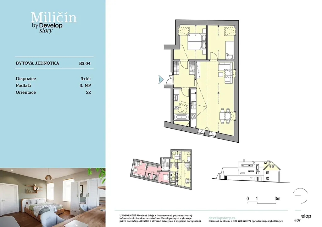 V srdci české sibiře Vám nabízíme byt 3+kk v nově vzniklém bytovém projektu ve městě Miličín, okres Benešov. Bytový dům vychází ze soudobé architektury okolního rázu a stávajícího objektu a je vytvořený v souladu s okolní tradiční zástavbou. V domě je k dispozici celkem 5 bytových jednotek o velikosti 3+kk a 2+kk ve 3 nadzemních podlažích s vlastním parkovacím stáním.