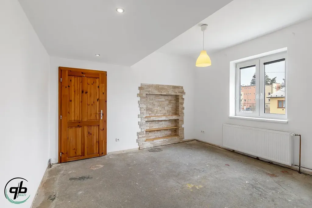 Nabízíme k prodeji mezonetový byt 3+1 o celkové ploše 82 m2, který se nachází v 1PP a 1NP, původně rodinného domu, který byl přestavěn na čtyři bytové jednotky. Okna v obou podlažích bytu jsou orientována na jihovýchod. V horním podlaží bytu se nachází kuchyň, koupelna se sprchovým koutem, samostatné WC, chodba a pokoj, navazující na komoru, která dříve sloužila jako zádveří původního vstupu do domu a je možné jej opět využít jako plnohodnotný, samostatný vstup do bytu. Ve spodním podlaží bytu se pak nachází dva pokoje a šatna . Byt je po částečné rekonstrukci kuchyně a koupelny, okna jsou plastová. V místnosti v horním patře bytu nejsou podlahové krytiny, nutno dodělat. Vytápění je zajištěno vlastním plynovým kotlem s radiátory. Parkovat lze před domem, případně, po dohodě uvnitř oploceného areálu, který na dům navazuje. Výhodou je lokalita, nedaleko centra města, kde najdete veškerou občanskou vybavenost. K dispozici je společný sklepní prostor, využívaný jako kolárna.