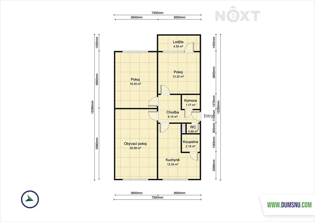 Byt s užitnou plochou 73 m² je umístěn v 4. nadzemním podlaží revitalizovaného panelového domu s výtahem.