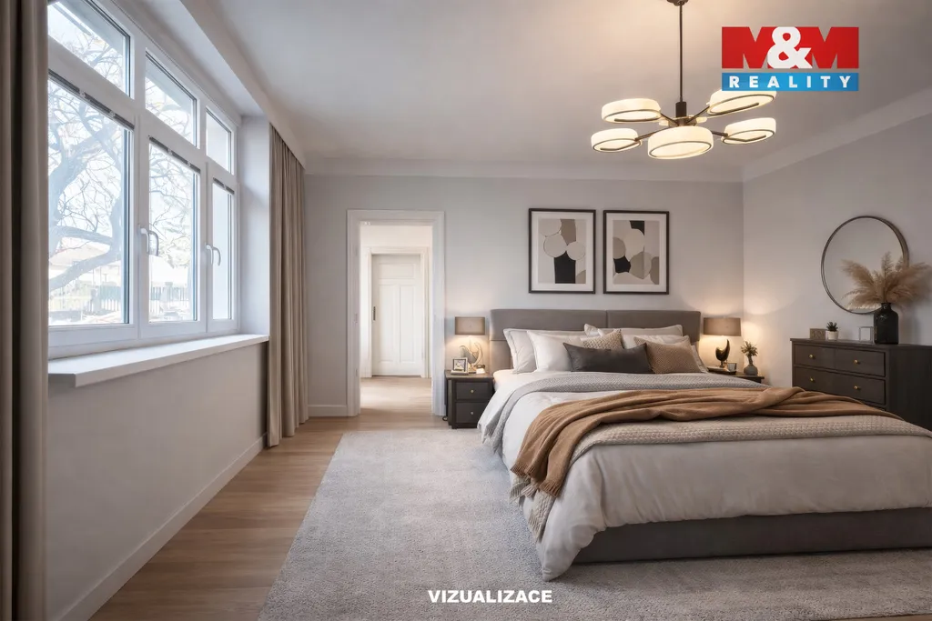 Střecha je kryta betonovými taškami a velkým benefitem je možnost další výstavby v podkroví, díky čemuž lze obytnou plochu výrazně rozšířit.