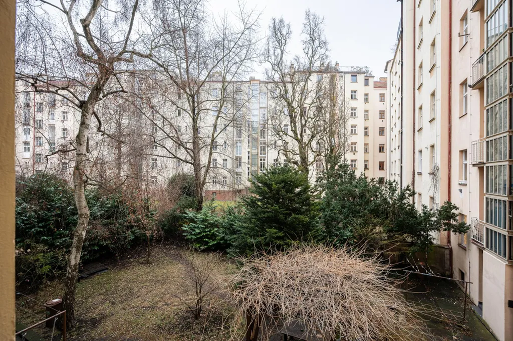Obě místnosti jsou orientovány na jih do zeleného vnitrobloku se stromy. Světlo a minimum ruchu z ulice.