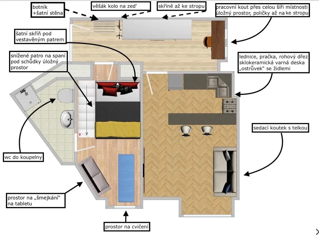 - vytvoření patra na spaní v menším pokoji