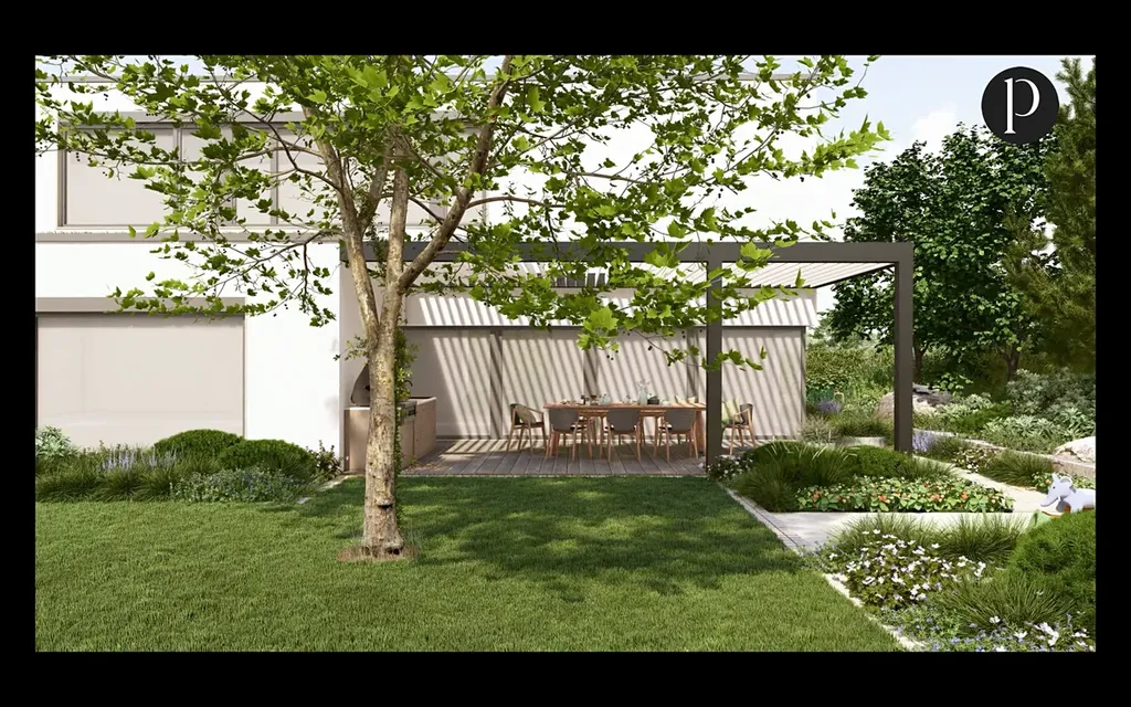 Zahrada poskytuje vysokou míru soukromí a vytváří ideální prostor pro relaxaci i aktivní trávení volného času celé rodiny.