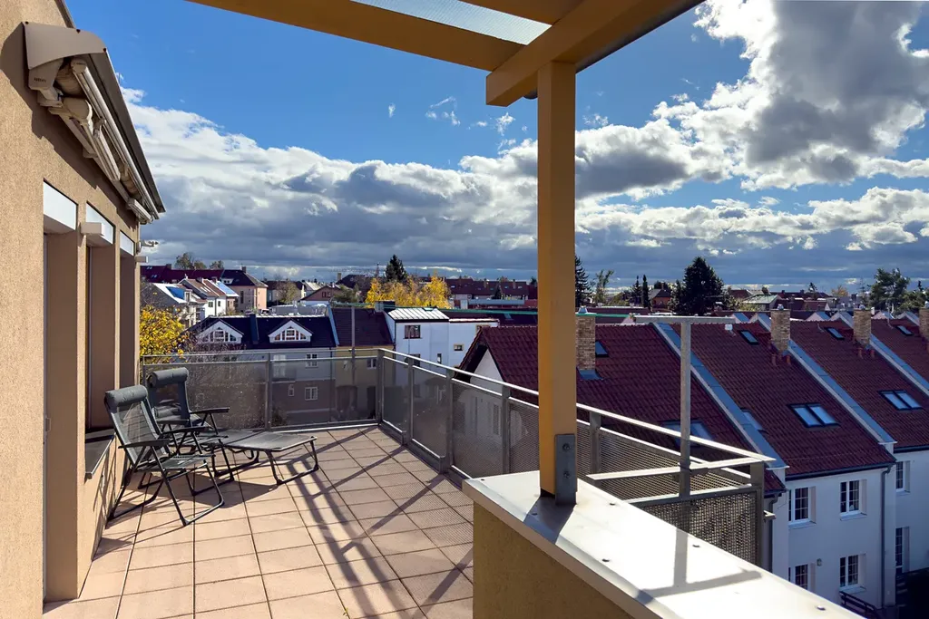 Jedinečný slunný byt 3+kk/4+kk s krbem, terasou a panoramatickým výhledem na celou Prahu