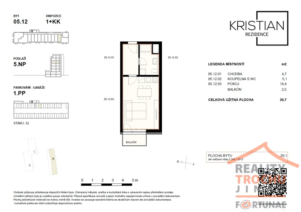 Nabízíme k pronájmu nový byt v Rezidenci Kristian o dispozici 1+kk, ve vyhledávané lokalitě v Hradci Králové – Moravské Předměstí. Byt se nachází v 5. patře zděného domu s výtahem. Celková plocha bytu činí 30,7 m² (včetně balkonu 2,5 m²).