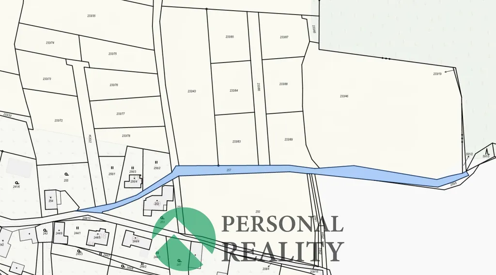 • Součástí prodeje je také převod podílu na příjezdové komunikaci – parcela č. 233/86, která bude novým majitelům předána zdarma; k této komunikaci bude náležet spoluvlastnický podíl 1/6.