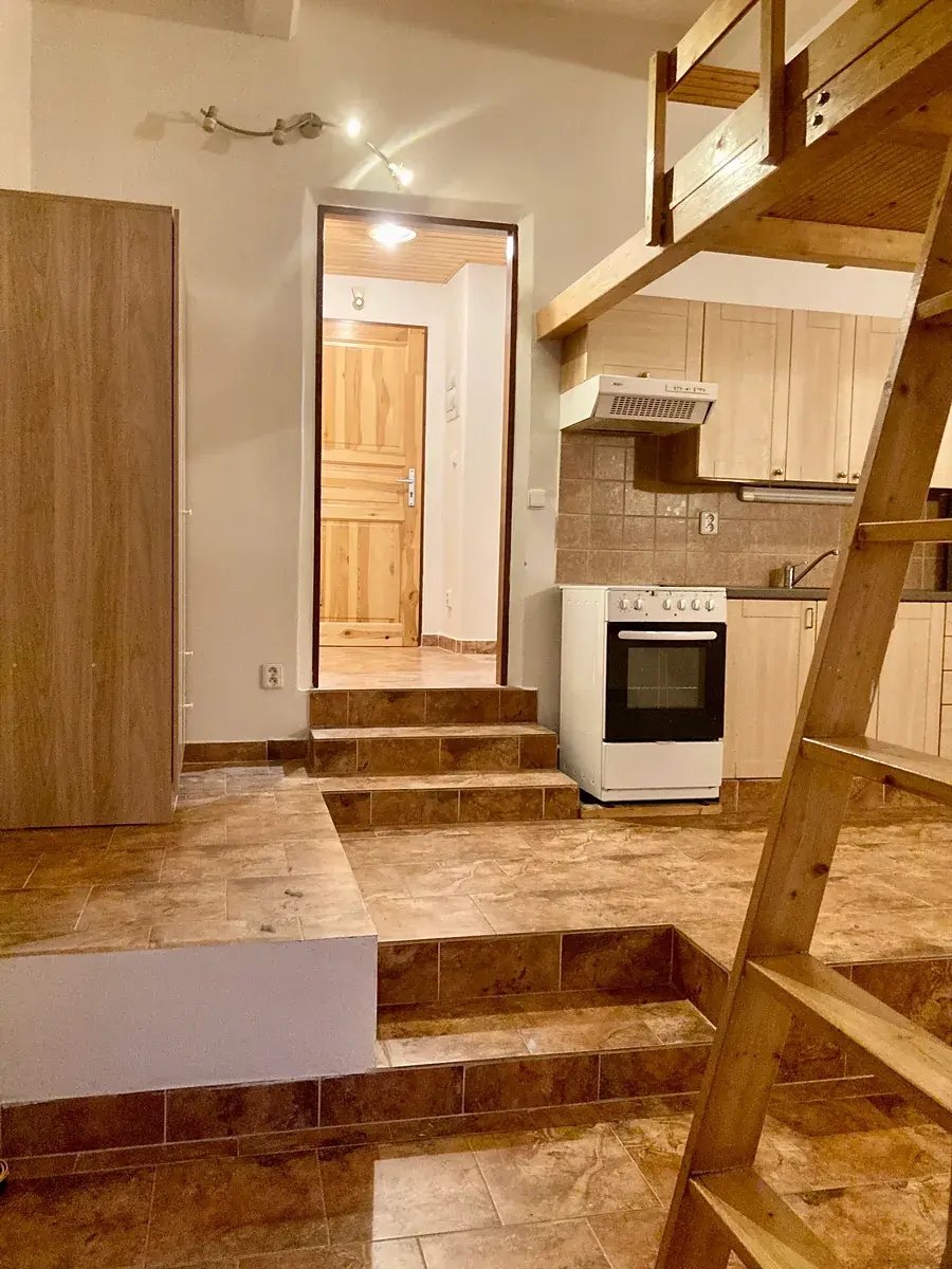 Nabízím k pronájmu byt orientovaný do vnitrobloku o dispozici 1kk o celkové ploše 23m2 plus spací patro v cihlovém činžovním domě na adrese Vrchlického 47/36, Praha 5 - Košíře.