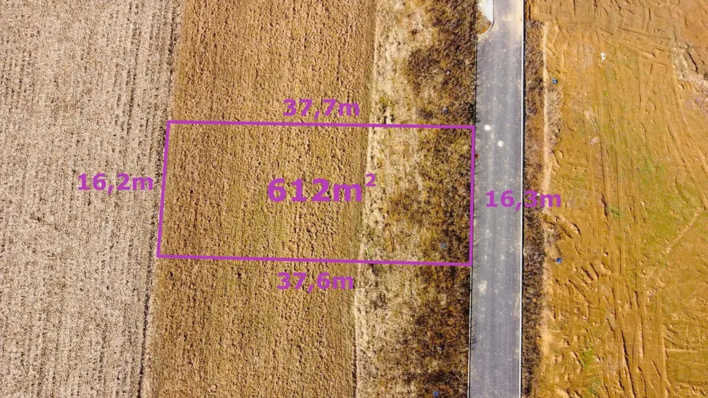 Tento pozemek č. 3 o výměře 612m2 je kompletně zasíťovaný s novou asfaltovou komunikací. Pozemek o rozměru 16,3m x 37,6m nabízí velkorysou uliční šíři tohoto pozemku. Jeho rovinatost vytváří předpoklad pro kvalitní možnosti zástavby rodinnými domy. Lze zde realizovat jak klasické domy s obytným podkrovím, tak i dvoupodlažní domy s rovnou střechou - ověřit na SÚ obce.
