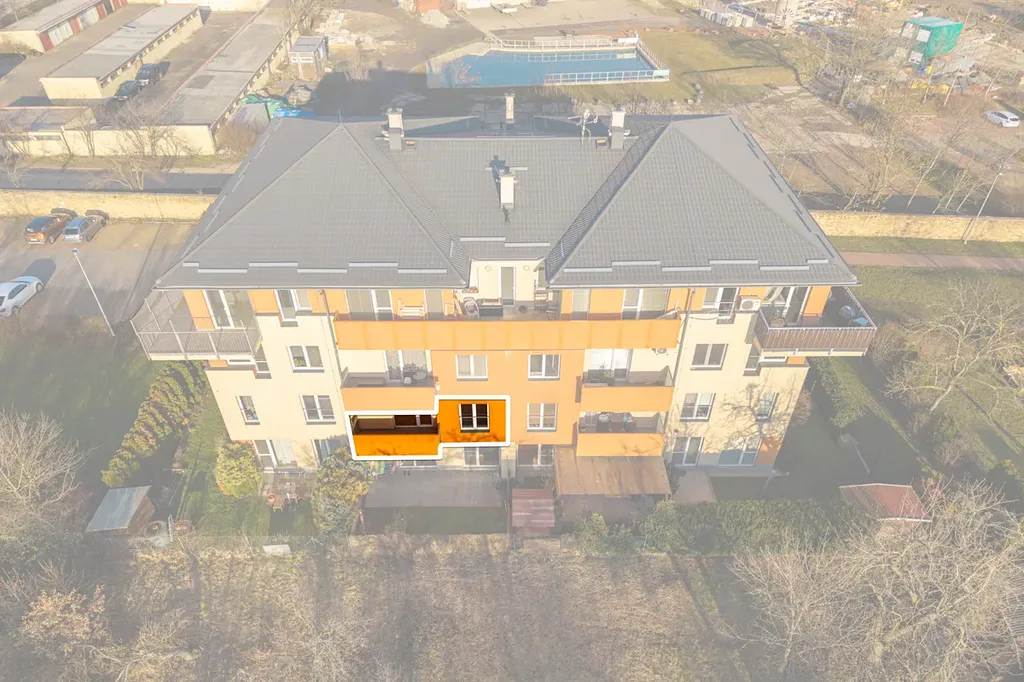 Obývací pokoj i ložnice je orientována jihozápadně, byt je tak velmi slunný. Úžasný výhled do jabloňového sadu, v bytě uslyšíte jen zpěv ptáků.