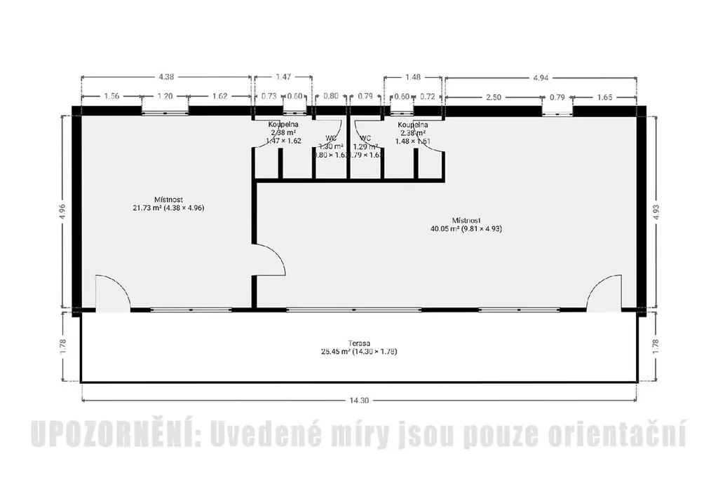 Před objektem se nachází terasa o výměře 25,45m2. Užitná plocha objektu činí 69m2.