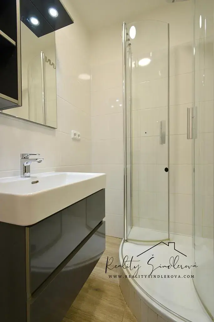Bytová jednotka má z části zděné a z části umakartové jádro, koupelnu se sprchovým koutem (ne vanou), WC jako samostatná místnost, kuchyňská linka s indukční elektrickou deskou a vestavnou troubou.