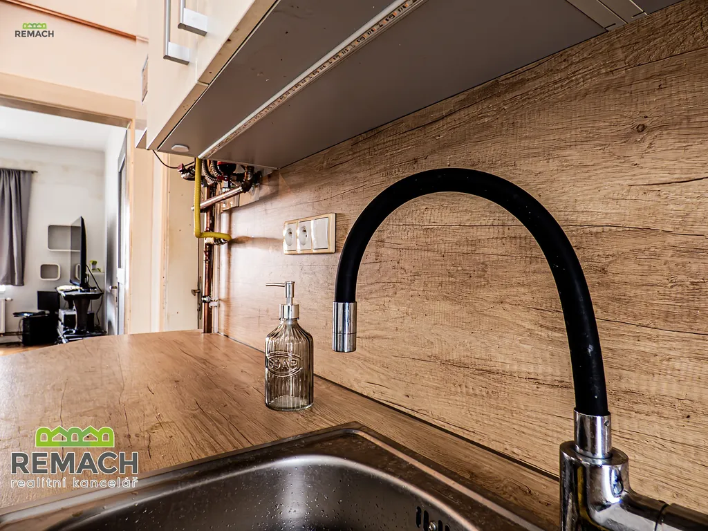 Jedinečnost tohoto bytu spočívá v jeho exteriéru, který zahrnuje vlastní sklep, venkovní kóji a možnost využívání zahrady za domem po dohodě s majiteli.
