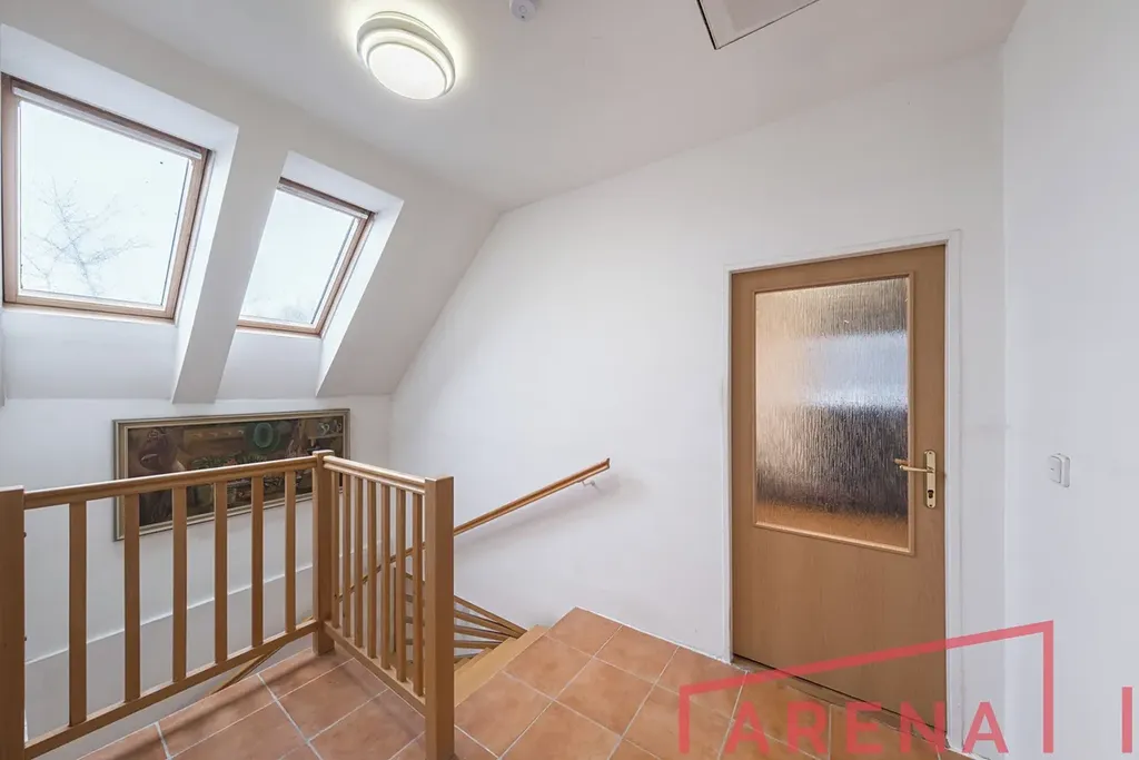 Dispozice: 1. NP: kuchyně s jídelnou, obývací pokoj, veranda, vstup do vinného sklepa s původní klenbou, schodiště do patra, 2. NP: 2 samostatné ložnice, koupelna