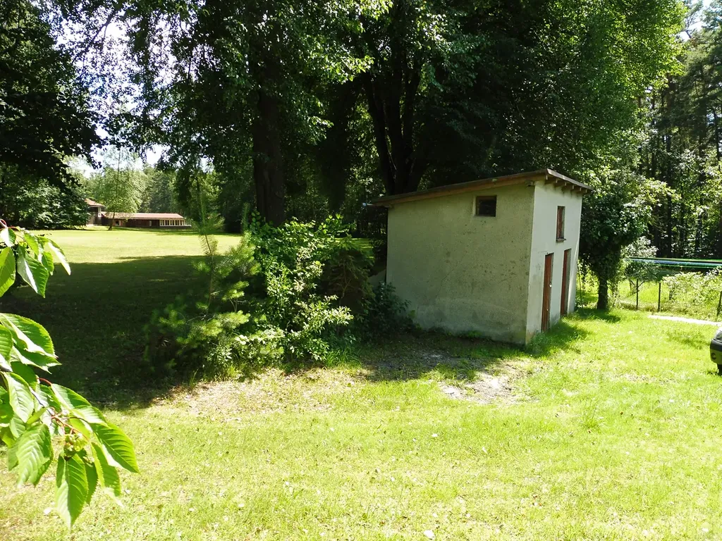 K domu přináleží pěkný pozemek určený územním plánu v celé ploše k zastavění s možností stavby nové vedlejší stavby s přístupem přímo z obecní komunikace pod domem. Objekt domu je napojený na vodovod, elektřinu zemní kabelovou přípojkou a odkanalizován do žumpy s trativodem pod domem.