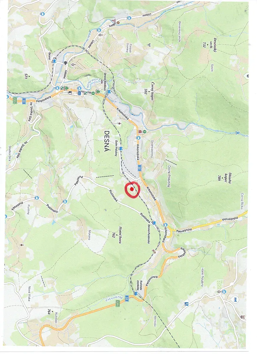Zajímavé místo vhodné pro stavbu rodinného i rekreačního domu osazené mimo město na obecní komunikace, která končí cca. 300 m za pozemkem u dvou posledních domů. Cesta je částečně vedená i po pozemcích jiných vlastníků, ale je zařazená do pasportu komunikací Města Desná s údržbou i v zimním období.