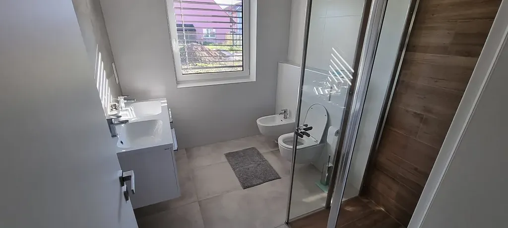 Dům je připojený na elektřinu (tři fáze), obecní vodovod (s retenční nádrží 5 m³), obecní kanalizaci (dešťová i splašková). Vytápění domu prostřednictvím elektrického podlahového topení s chytrými termostaty v každé místnosti. Klimatizace je zavedena do každého pokoje, regulovatelné samostatně. Na střeše domu je zbudovaná fotovoltaika s výkonem 15 kWp a 4 bateriemi po 19 kW, které jsou celodenně nabíjeny. Podlahové krytiny jsou velkoformátové dlaždice ve všech místnostech, plastová okna v trojskle, vchodové dveře z hliníku. Na všech oknech jsou umístěny předokenní hliníkové žaluzie.