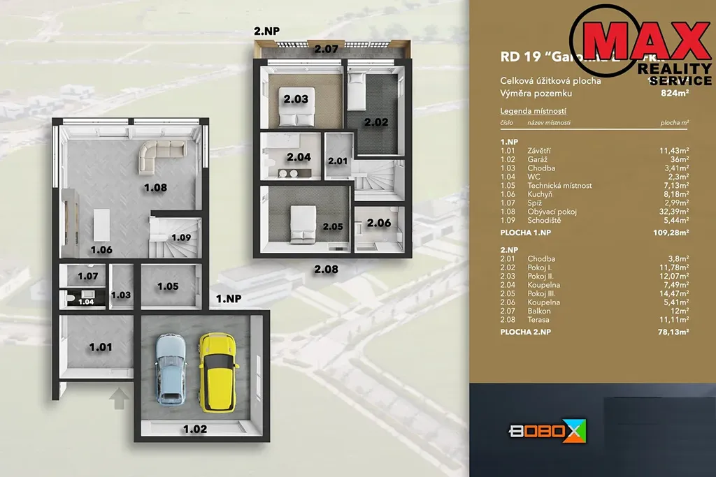 ✔ parkování pro další automobily na pozemku