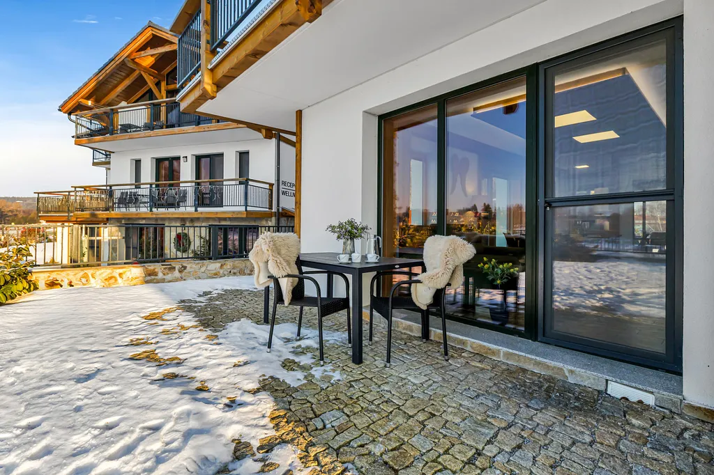 Představuji Vám apartmán 3+kk o ploše 73 m² v prémiové rezidenci přímo u pláže Lipenské přehrady ve Frymburku.
