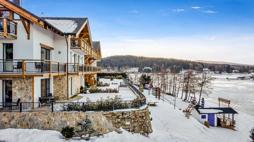 Lipno nabízí celoroční využití — léto u vody, cyklostezky a Šumavu, podzimní přírodu, zimní lyžování i bruslení na zamrzlém jezeře. Navíc jen krátká vzdálenost do rakouských Alp (Hochficht, Sternstein) nebo města Linz.