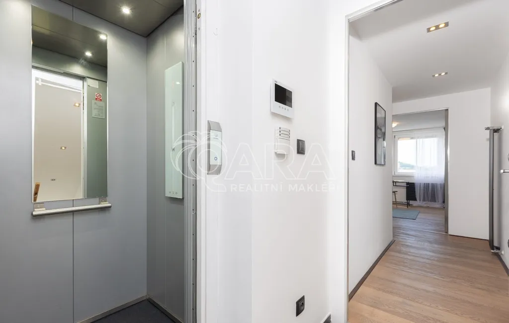 Zapomeňte na stereotypní podkrovní byty s nízkými stropy. Tohle je prostor, kde se můžete nadechnout. Na ploše 146 m² se rozkládá byt, který v sobě snoubí moderní design a praktičnost. Díky výtahu, který vás doveze až do vaší předsíně pomocí čipu, si užijete maximální komfort a soukromí. Pro hosty je k dispozici video telefon a schodiště, které můžete využít pro dodatečný úložný prostor.