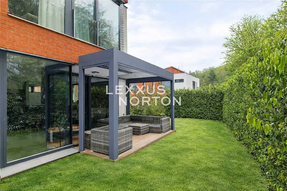 V suterénu je vybudován samostatný apartmán s kuchyňskou linkou a koupelnou, se vstupem do zahrady – ideální pro hosty, chůvu či vícegenerační bydlení. Dále zde naleznete technické zázemí, komory a přímý vstup do garáže s vyhřívaným vjezdem a dvěma nabíjecími stanicemi pro elektromobily.
