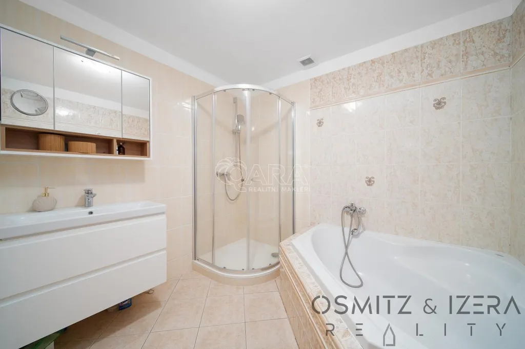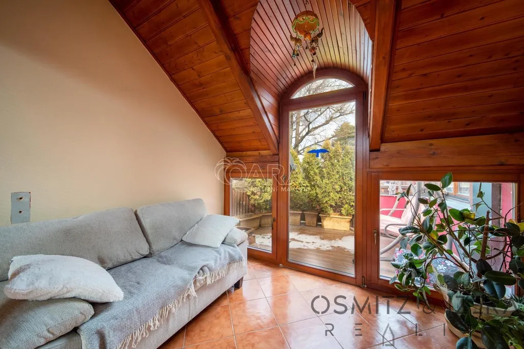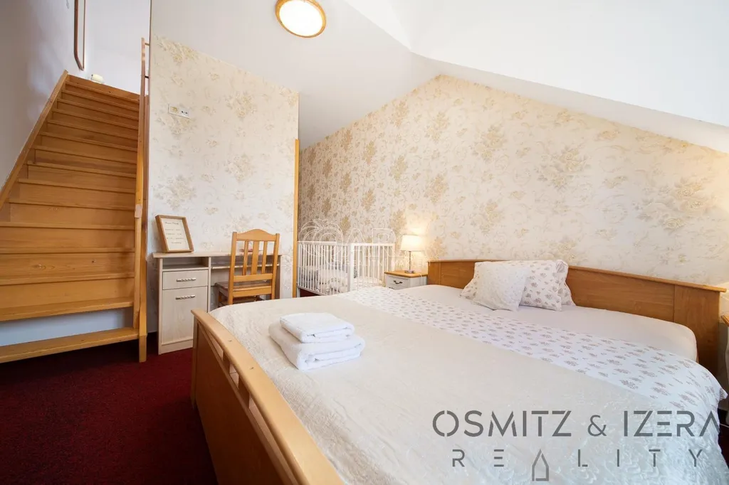Luxusní zázemí pro majitele: Nadstandardní apartmán 4+kk s krbem, zimní zahradou a terasou. Tento prostor je také možné přebudovat na další apartmány.