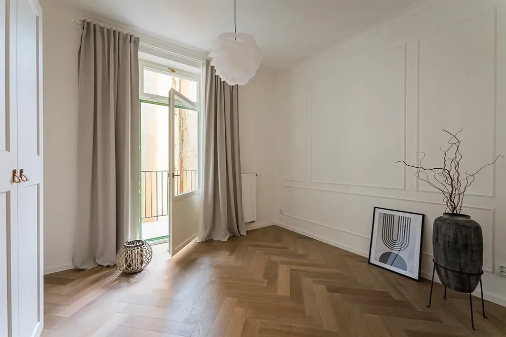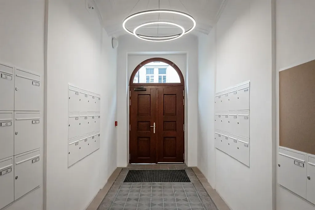 Zrekonstruovaný byt 2+kk s balkonem se nachází ve 3. patře krásného secesního rezidenčního domu z roku 1907, který v roce 2020 prošel kompletní rekonstrukci. Byt má obytnou plochu 52 m2 a balkon 2,9 m2. Dispozičně se skládá ze vstupní předsíně a navazující haly, ložnice s balkonem orientovaným do vnitrobloku, obývacího pokoje s vybavenou kuchyní a koupelny se sprchou a WC. Byt je částečně zařízený skříně v ložnici a chodbě, kuchyňská linka s vestavěnými spotřebiči (varná deska, trouba, myčka, lednice s mrazákem), jídelní kout, pračka a sušička. Jiný nábytek lze zajistit na základě dohody. K bytu náleží sklep. Tento rezidenční dům se nachází v hezké rezidenční části Žižkova a v pěší vzdálenosti od oblíbeného náměstí Jiřího z Poděbrad. V okolí je veškerá občanská vybavenost. Měsíční zálohy na služby jsou 7 000 Kč (včetně topení, vody a TUV), elektřina se převádí na nájemce. Kauce 2 nájmy.