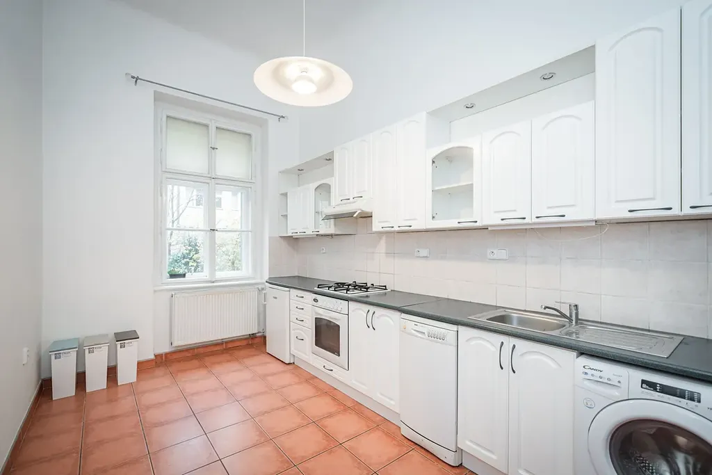 Prostorný byt 3+1 ( 2 ložnice, 1 koupelna) o celkové rozloze cca 90m2, je situovaný v 1. nadzemním patře rezidenční budovy s výtahem, v prestižní lokalitě na Vinohradech Praha 2, ulice Mánesova.