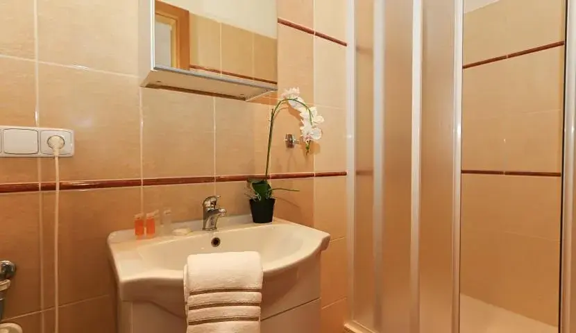 Byt sestává ze vstupní chodby, obývacího pokoje, propojeného s kuchyňským koutem vybaveným spotřebiči (lednice s mrazákem, varná deska, trouba, mikrovlnní trouba), 2 ložnic a koupelnou s vanou a pračkou se sušičkou. Toaleta je odděleně. Na podlahách jsou parkety a dlažba. Další vybavení: TV se satelitem, DVD, WiFi, vysavač, žehlička + žehlící prkno.