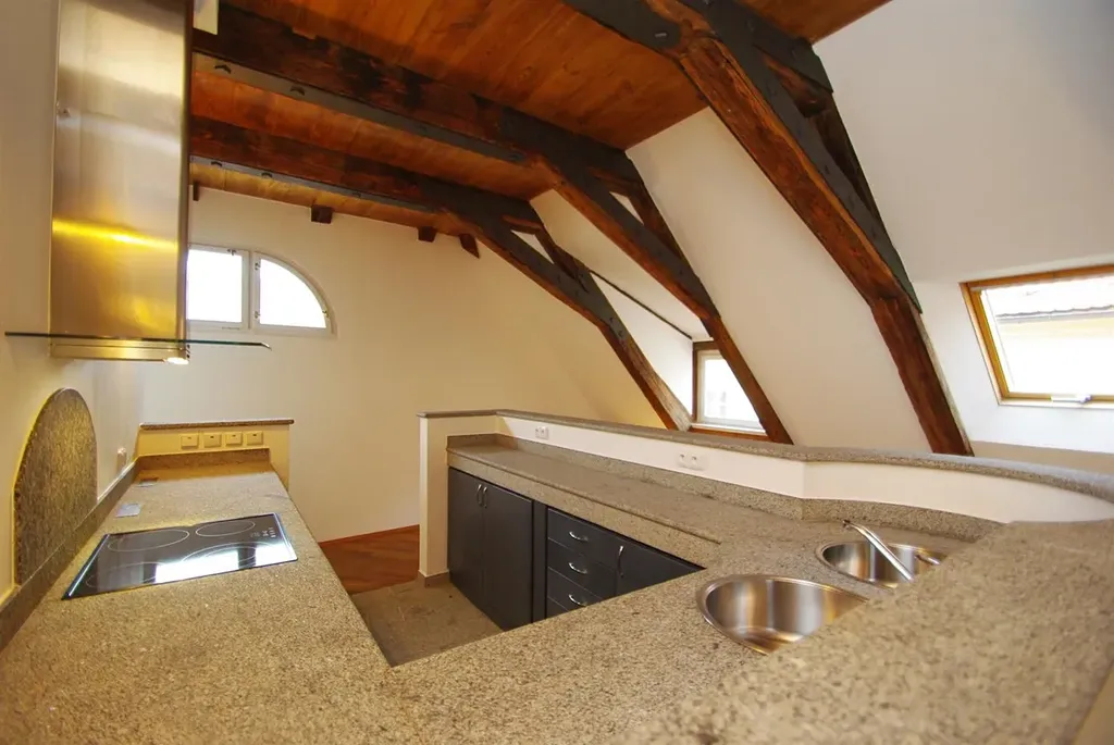 Reprezentativní podkrovní mezonet 4+kk ( 3 ložnice, 2 koupelny), o celkové obytné ploše 221m2, se nachází ve 2. a 3. patře dobře udržovaného domu s výtahem na Praze 1 Malá Strana, ulice Vlašská.