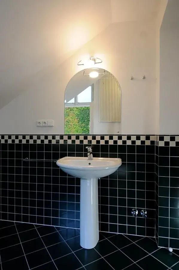 V částečně zařízeném bytu (3 ložnice, 2 koupelny) se nachází prostorná vstupní hala, po jejíž levé straně se vyskytují 2 ložnice s koupelnou (vana, umyvadlo, toaleta, bidet). Obývací pokoj je od haly oddělen antickými dveřmi. V bytě se nachází i moderně vybavená kuchyň s vestavěnými spotřebiči (lednice, sporák, mikrovlnka, myčka), jejíž součástí je i velká komora. V bytě se dále nachází ještě jedna ložnice a samostatná koupelna (sprchový kout, umyvadlo, toaleta, bidet). Do bytu lze vstoupit dvěma způsoby buď přes soukromou předzahrádku nebo přímo z výtahu.