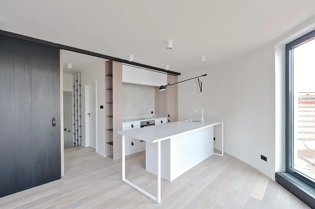 Luxusní moderní byt 2+kk se dvěma terasami (40m2 ; 60m2), je situovaný v prestižní rezidenční lokalitě Vinohrady. Byt je situovaný v 6.NP reprezentativního zrekonstruovaného domu s výtahem, přímo na náměstí Jiřího z Poděbrad.