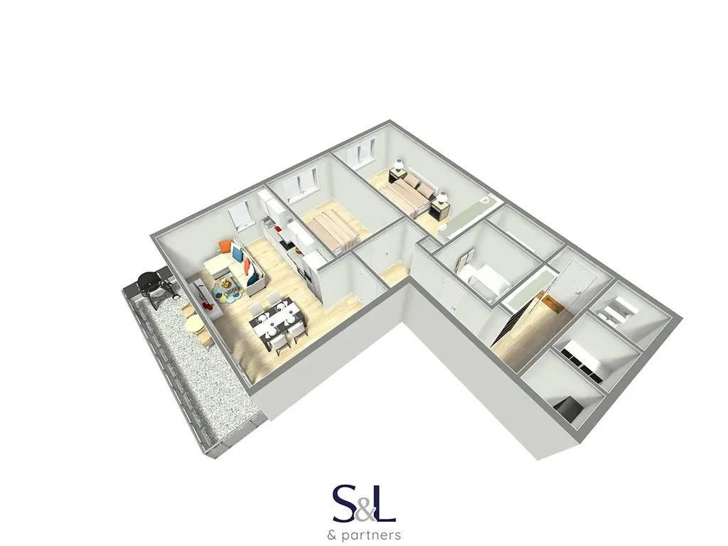 Velkým benefitem bytu je lodžie o velikosti 12 m², která poskytuje prostor srovnatelný s menší terasou.