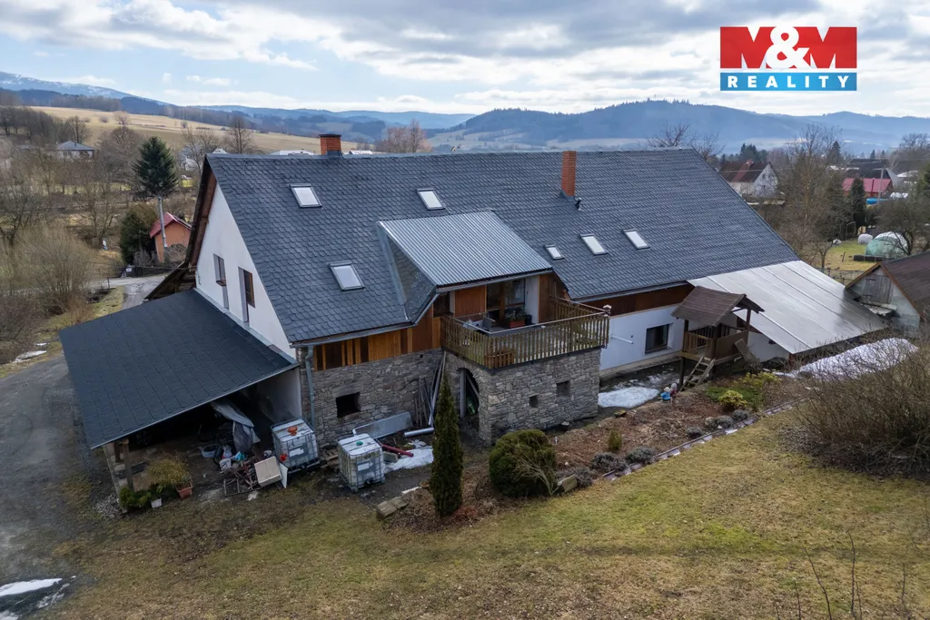 V zastoupení majitelů nabízíme prodej jedinečného domu, který se nachází v klidné části obce, kde jsou termální lázně, turistické stezky, cyklotrasy a 12 km je Ski areál Kouty nad Desnou. V domě jsou 2 samostatné bytové jednotky 4+1, každá s vlastní koupelnou a toaletou, jedna je v přízemí, druhá v patře, dále je v dom prostorná půda s možností výstavby dalších pokojů. Vytápění plynovým kotlem, krbovými kamny a nebo kotlem na tuhá paliva, v každém pokoji jsou radiátory, ohřev vody bojlerem. K domu náleží rozsáhlý pozemek navazující na louku a les, parkování na pozemku + garáž + zastřešené parkovací stání pro 3 auta. Veškerá občanská vybavenost v místě. Vhodné jak k trvalému bydlení, tak i vzhledem k lokalitě na investici za účelem krátkodobých pronájmů. Nemovitost je možné financovat úvěrem, který vám zdarma vyřídíme. Více informací v RK.