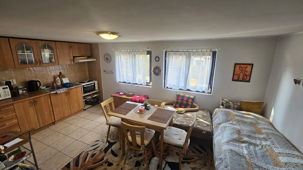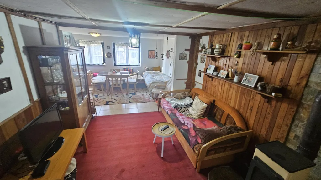 Prodej pěkné - udržované - celoročně užívané chaty na okraji obce Chýnov - cca 11 km od Tábora. Chata je postavena na okraji obce s velice dobrý přístupem po udržované komunikaci. V okolí je více podobných chat užívaných k celoročnímu provozu. Chata byla postupně modernizována - nová koupelna a WC, nová kuchyň a další. Popis chaty : sklep pod cca 1/3 chaty. Přízemí - vstupní hala, 1 samostatná ložnice, velká hlavní obytná místnost s kuchyňským koutem, 1 komora, koupelna a WC. Podkroví u chaty není. Pozemek celkem 457 m2 - z toho je zastavěná plocha 58 m2. Pěkný udržovaný pozemek. Na pozemku je krytá pergola s menším venkovním grilem. Předností nemovitosti je napojení na obecní vodovod, obecní kanalizaci, elektřinu 220/380V a možnost napojení na plyn / sousední nemovitosti mají plynové přípojky /. V chatě se zatím topí elektřinou a kamny na pevná paliva. Podrobné informace k chatě v RK. Prohlídky nemovitosti po předchozí domluvě.