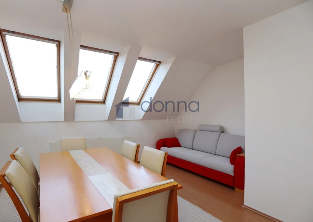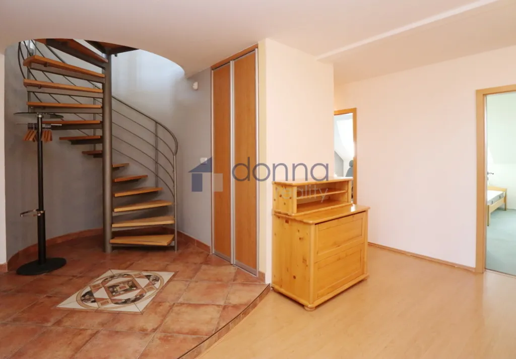 Nabízíme k pronájmu mezonetový byt 5+kk/T, 175 m2 s výtahem, nacházejícím se v 5. a 6. patře činžovního domu, v ulici Jenštejnská, Praha 2 – Nové Město. Byt je zařízen a sestává ze dvou ložnic, kuchyně, jídelny, koupelny s vanou, WC a předsíně s vestavěnými skříněmi a točitým schodištěm do vyššího patra, kde se nachází prostorný obývací pokoj se zimní zahradou a s pracovním koutem, koupelnou se sprchou a s dalším WC, saunou a velkou terasou (13m2) s grilem a krásným výhledem na Pražský hrad a Petřín. Topení a ohřev teplé vody zajišťuje plynový kotel, v koupelnách a kuchyni je podlahové topení. V horním patře je zavedena klimatizace. Byt je možné po dohodě dovybavit nábytkem. Dům se nachází v atraktivní části centra Prahy v blízkosti metra B, stanice Karlovo náměstí a tramvajových zastávek. Parkování na modré zóně. Volný ihned.