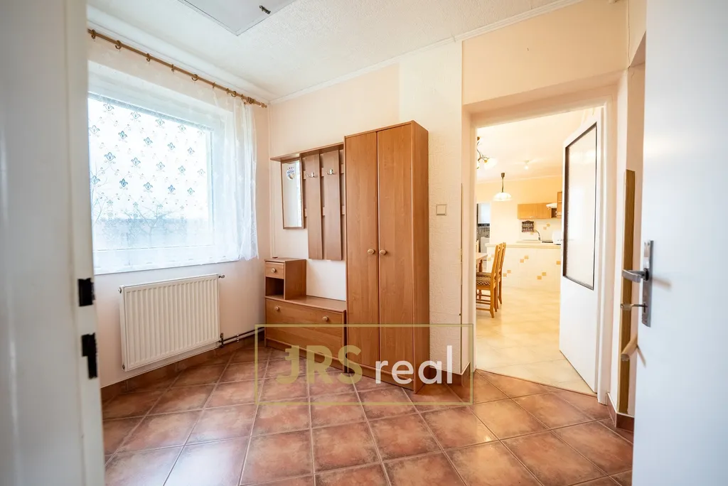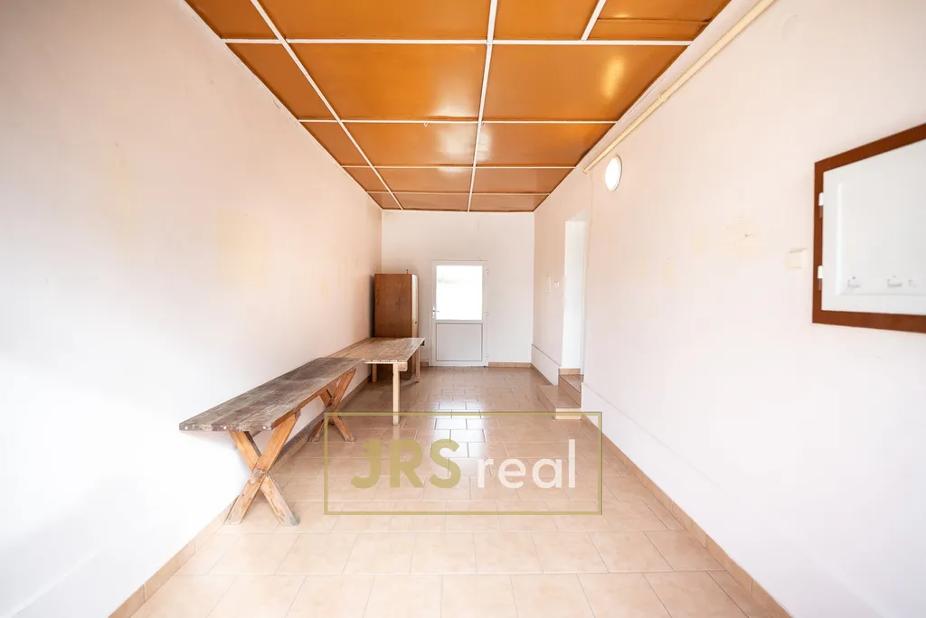Z kuchyně je vstup do koupelny se sprchovým koutem a toaletou. Koupelna disponuje umyvadlem se zrcadlem a plynovým kotlem, který zajišťuje vytápění domu. Z jídelny se dále vstupuje do dvou průchozích pokojů, které mohou sloužit jako dětský pokoj nebo ložnice. Dispozice domu umožňuje flexibilní využití dle potřeb nové rodiny. Z hlavní chodby je pak přístup do obývacího pokoje, jenž nabízí příjemné místo pro odpočinek a rodinné večery. K domu náleží terasa, která přímo vybízí k posezení s přáteli nebo k relaxaci po náročném dni. Velkým benefitem je prostorná garáž a vlastní vinný sklep, který ocení nejen milovníci vína, ale i ti, kteří hledají další úložné prostory. Dům má sedlovou střechu, plastová okna a je napojen na veškeré inženýrské sítě – vodu, elektřinu, kanalizaci i plyn. Praktickým bonusem je vstup na půdu přes výklopný žebřík s možností dalšího uskladnění věcí. Tato nemovitost představuje skvělou příležitost pro rodinu, která hledá klidné bydlení s dostatkem prostoru, soukromí a potenciálu k vytvoření skutečného domova. V případě zájmu o více informací či sjednání prohlídky mě neváhejte kontaktovat.