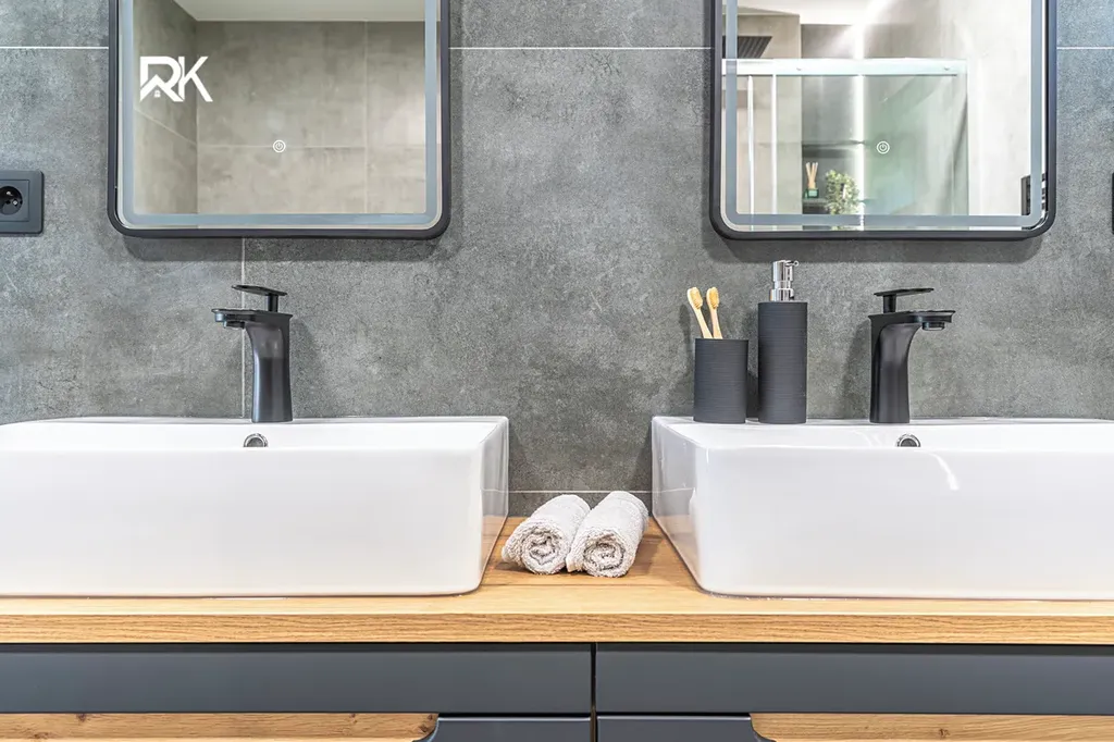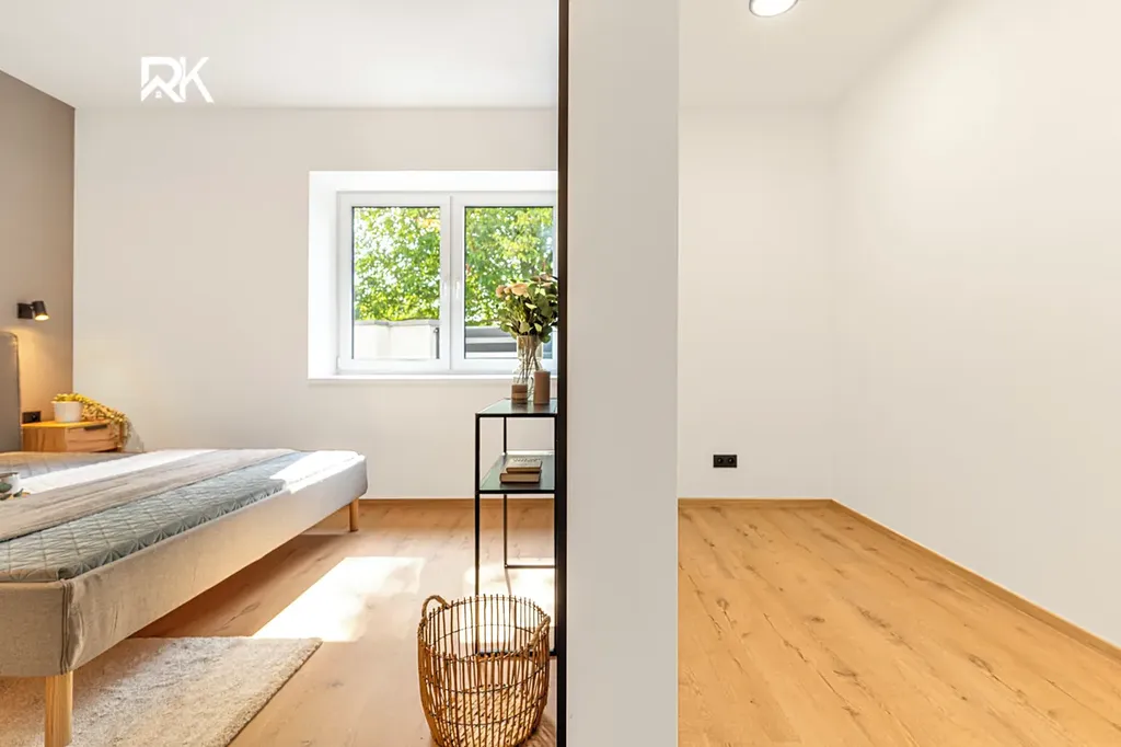 Dvě koupelny s WC, prostorný obývací pokoj s výstupem na terasu, tři ložnice a moderní kuchyňská linka AEG. Vše nové, včetně rozvodů elektřiny, vody i kanalizace.