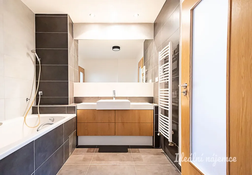 Byt bude k pronájmu z větší části nezařízen. Srdcem bytu je prosvětlený obývací pokoj s jídelním koutem a plně vybavenou kuchyňskou linkou, kde nechybí moderní spotřebiče včetně myčky, elektrické trouby a digestoře. Další dva samostatné pokoje nabízejí variabilní využití – skvěle poslouží jako ložnice, dětský pokoj nebo klidná pracovna. Koupelna disponuje vanou i pračkou, přičemž toaleta je pro větší komfort oddělena zvlášť. Praktickou stránku bytu doplňuje komora, která hravě vyřeší veškeré úložné potřeby.