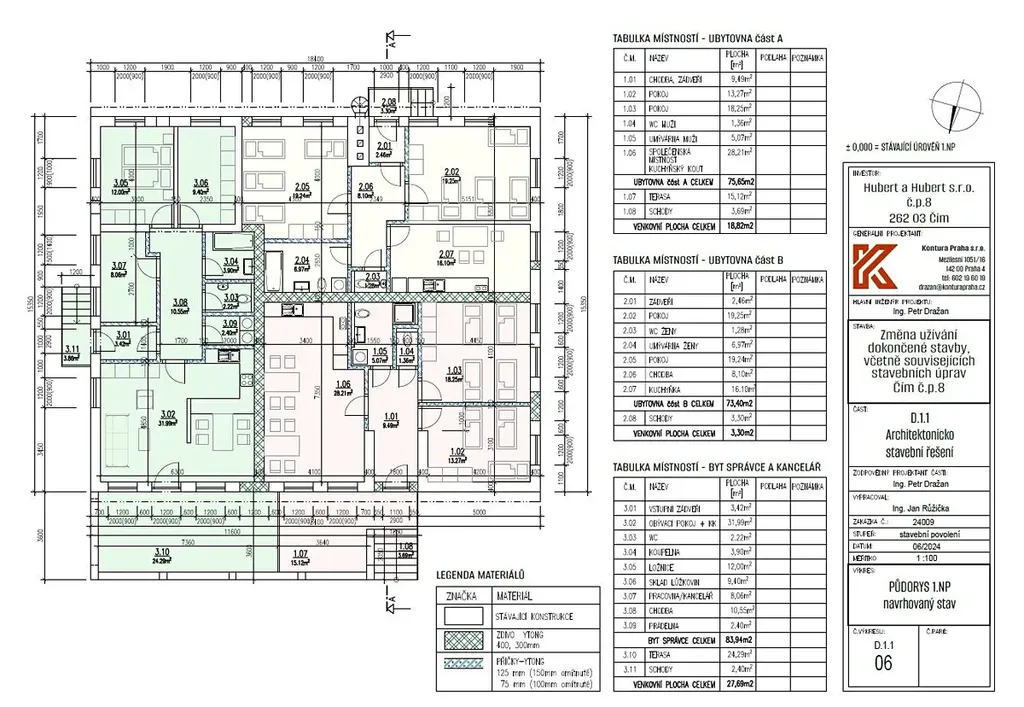Byty: A) 75,65 m2 + terasa 15,12 m2 + schody 3,69 m2