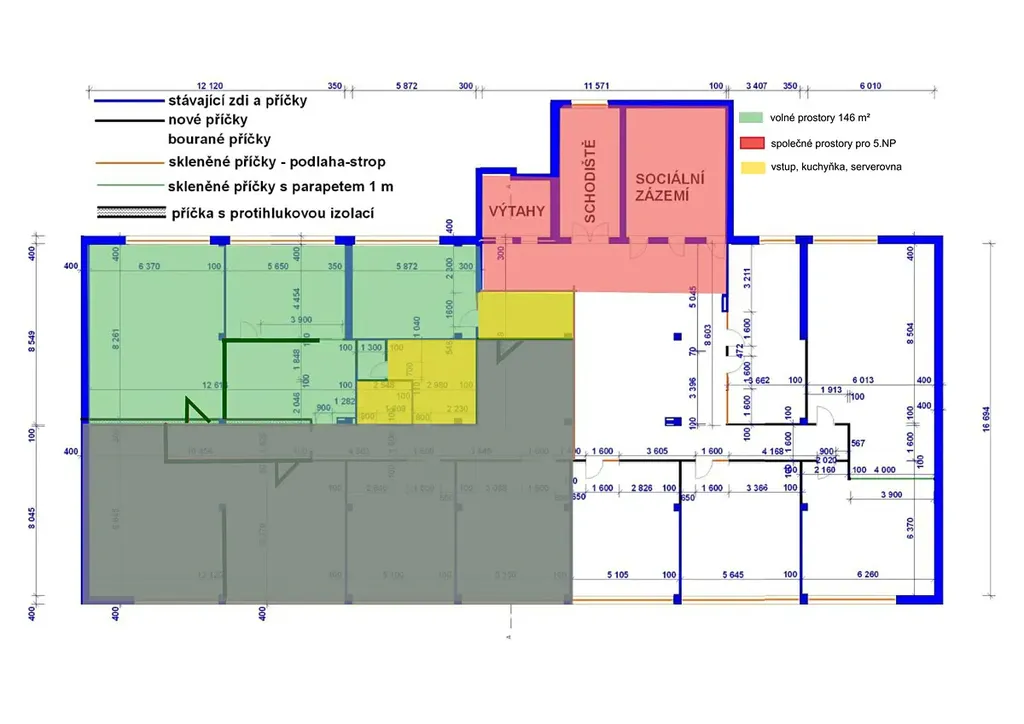 Nabízíme k pronájmu kancelářské prostory o výměře 146 m² v 5.NP.