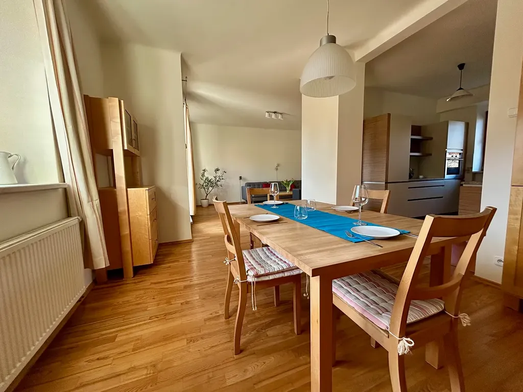 Na jídelní část navazuje moderní kuchyňská linka (9 m2) plně vybavena značkovými spotřebiči: sklokeramický sporák a horkovzdušná trouba Siemens, myčka Miele, lednice Electronic.