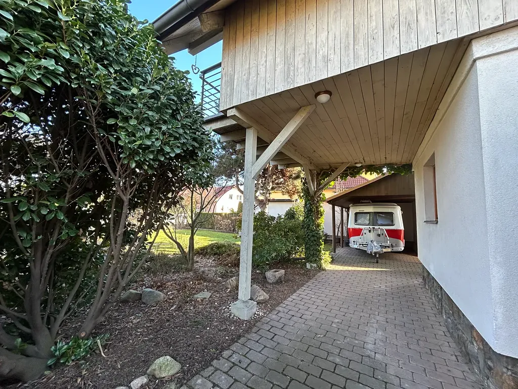 K domu náleží dvě parkovací stání kryté pergolou, sklep 15 m2, zahradní domek o velikosti 10 m².