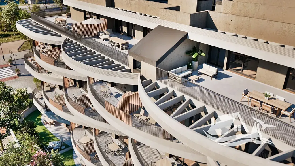 Interiéry jsou vybaveny moderními prvky, klimatizací a vestavěnými skříněmi, které zjednodušují organizaci domácnosti, a základními spotřebiči pro pohodlí každodenního života. Terasy poskytují další prostor pro relaxaci na čerstvém vzduchu a plně využívají středomořského klimatu při snídani i večerních posezeních s výhledem. Společné zázemí zahrnuje dobře vybavenou posilovnu, která umožní udržet aktivní životní styl bez nutnosti docházení, a prostory navržené pro odpočinek i společenské aktivity.