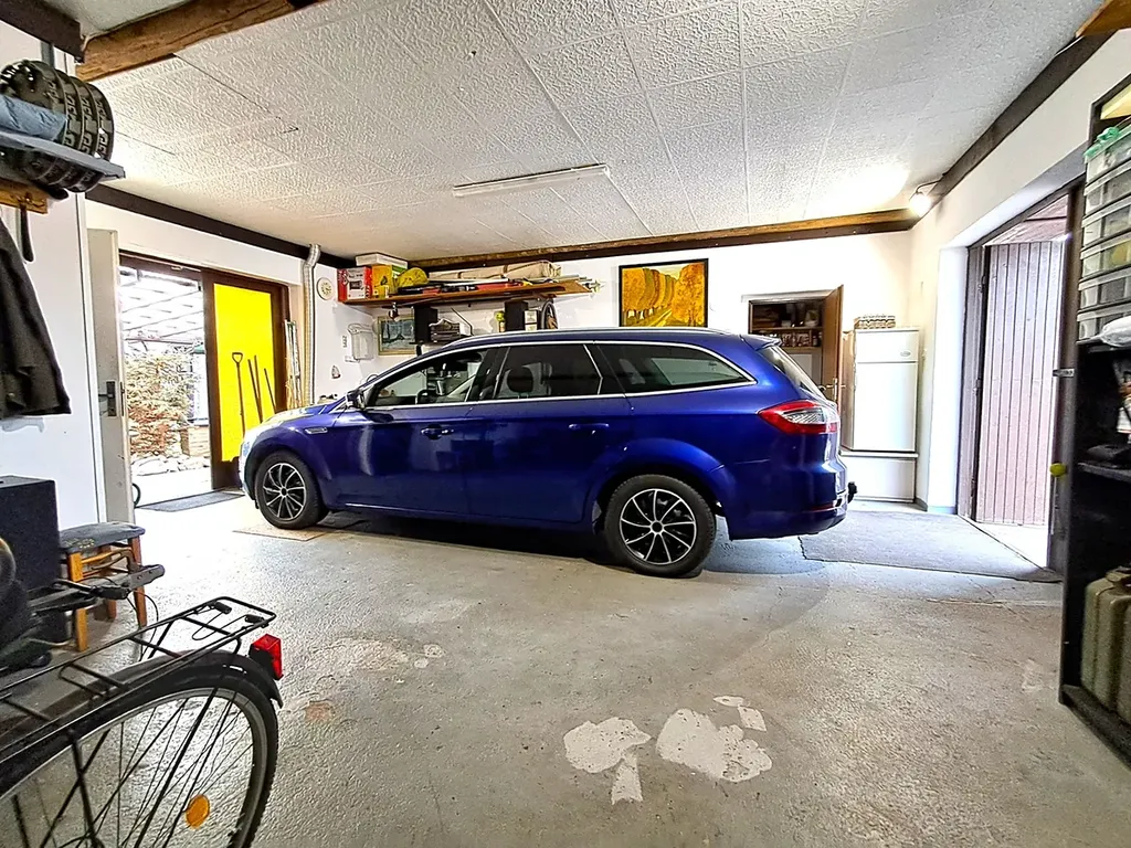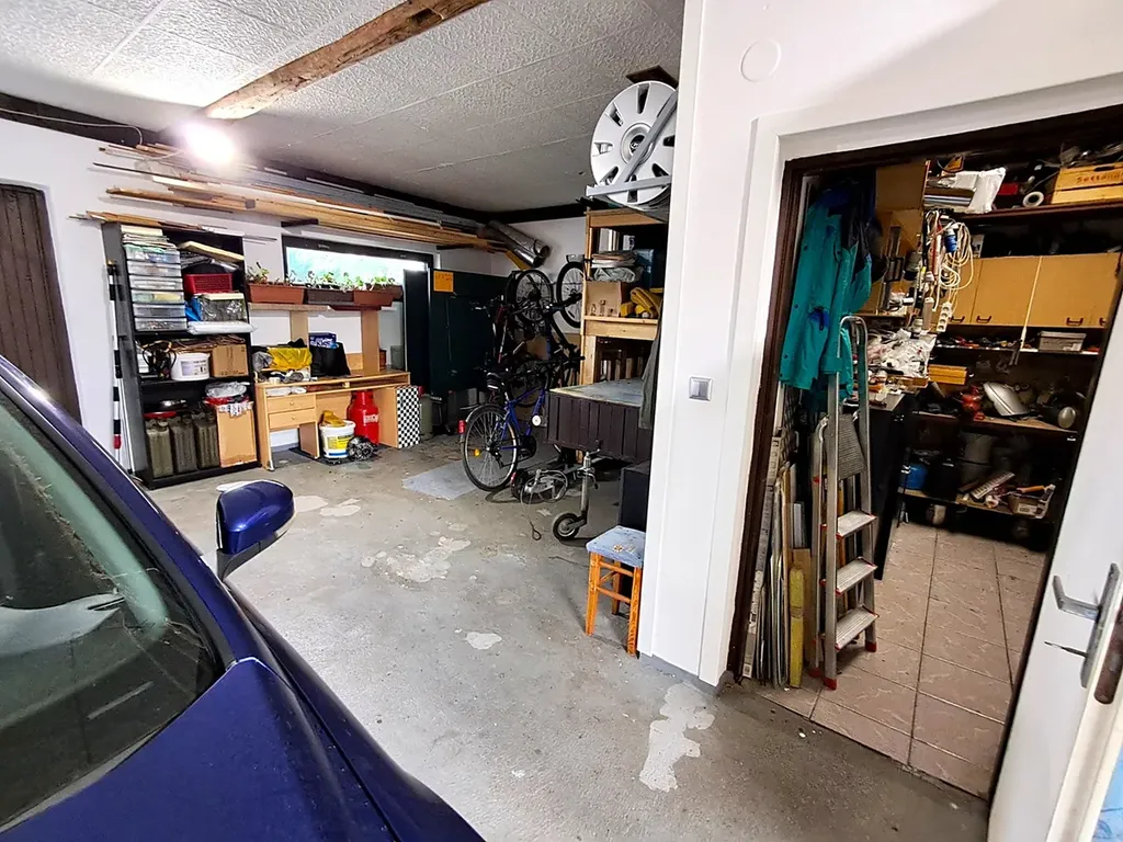 V přízemí rekreační části se nachází prostorná garáž s dílnou, letní kuchyň, sauna, sprchový kout a WC.