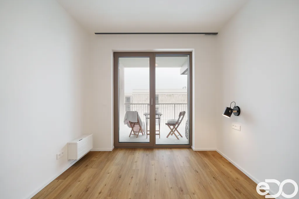 Byt se nachází v novostavbě a čeká na svého prvního nájemníka. Moderní dispozice nabízí prostorný obývací pokoj s kuchyňským koutem, dvě samostatné ložnice, koupelnu a dostatek úložného prostoru. Ze všech pokojů je vstup na terasu o velikosti 8,30 m², která poskytuje příjemné místo k relaxaci.
